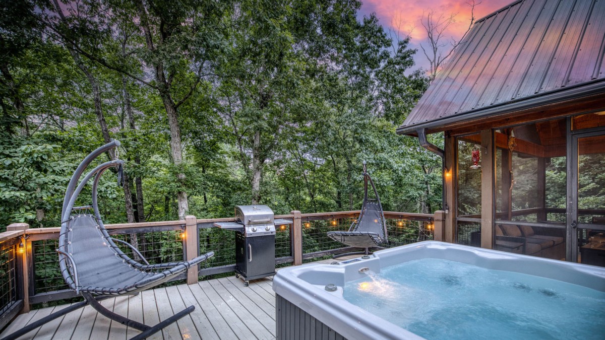 The charm of the Blue Ridge Mountains is undeniable. As twilight casts its gentle glow over the peaks, the serene beauty of the mountains provides a stunning backdrop to your evening fun. The cool mountain air adds a refreshing touch to your night, inviting you to step outside and soak in the views. Whether you’re on the porch with a warm drink or in the game room, the charm of the mountains enhances every moment.